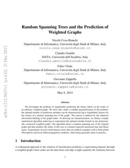 Random Spanning Trees and the Prediction of Weighted Graphs